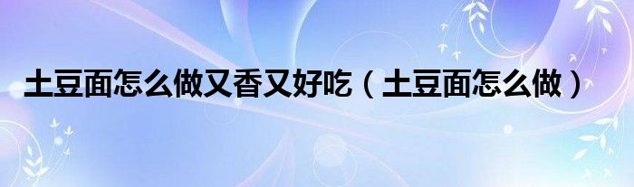 大家好,小育來為大家講解下。土豆面怎么做又香又好吃,土豆面怎么做很多人還不知道,現(xiàn)在讓我們一起來看看吧!