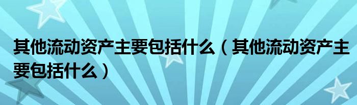 大家好,小育來(lái)為大家講解下。其他流動(dòng)資產(chǎn)主要包括什么,其他流動(dòng)資產(chǎn)主要包括什么很多人還不知道,現(xiàn)在讓我們一起來(lái)看看吧!