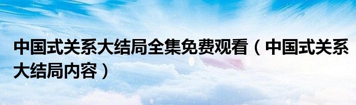 大家好,小育來為大家講解下。中國(guó)式關(guān)系大結(jié)局全集免費(fèi)觀看,中國(guó)式關(guān)系大結(jié)局內(nèi)容很多人還不知道,現(xiàn)在讓我們一起來看看吧!