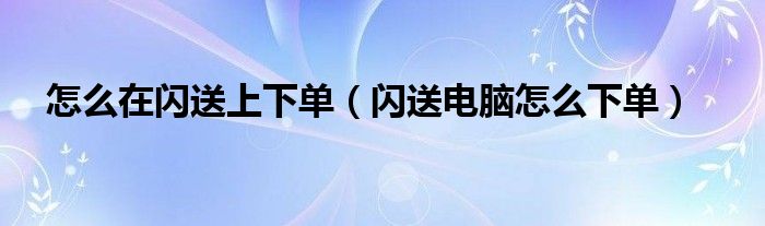 大家好,小育來(lái)為大家講解下。怎么在閃送上下單,閃送電腦怎么下單很多人還不知道,現(xiàn)在讓我們一起來(lái)看看吧!