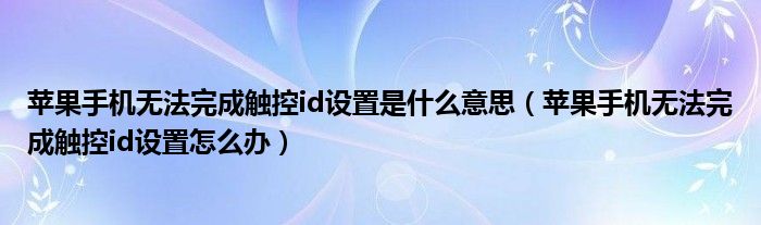大家好,小育來為大家講解下。蘋果手機無法完成觸控id設(shè)置是什么意思,蘋果手機無法完成觸控id設(shè)置怎么辦很多人還不知道,現(xiàn)在讓我們一起來看看吧!