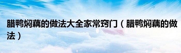 大家好,小育來為大家講解下。臘鴨燜藕的做法大全家常竅門,臘鴨燜藕的做法很多人還不知道,現(xiàn)在讓我們一起來看看吧!
