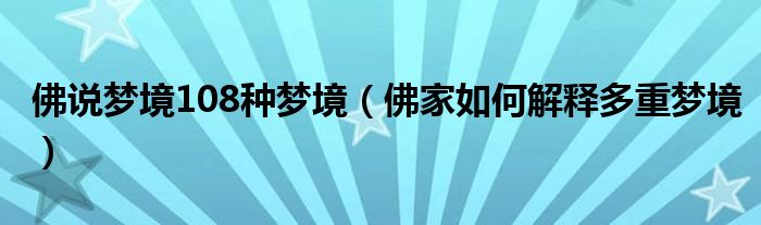 大家好,小育來(lái)為大家講解下。佛說(shuō)夢(mèng)境108種夢(mèng)境,佛家如何解釋多重夢(mèng)境很多人還不知道,現(xiàn)在讓我們一起來(lái)看看吧!