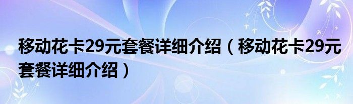 大家好,小育來為大家講解下。移動花卡29元套餐詳細介紹,移動花卡29元套餐詳細介紹很多人還不知道,現(xiàn)在讓我們一起來看看吧!