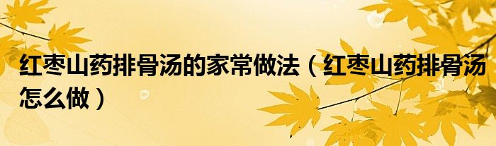 大家好,伊人來為大家解答以上問題。紅棗山藥排骨湯的家常做法,紅棗山藥排骨湯怎么做很多人還不知道,現(xiàn)在讓我們一起來看看吧!
