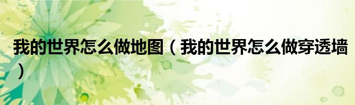 大家好,小育來為大家講解下。我的世界怎么做地圖,我的世界怎么做穿透墻很多人還不知道,現(xiàn)在讓我們一起來看看吧!