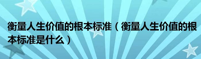 大家好,小育來為大家講解下。衡量人生價值的根本標(biāo)準(zhǔn),衡量人生價值的根本標(biāo)準(zhǔn)是什么很多人還不知道,現(xiàn)在讓我們一起來看看吧!