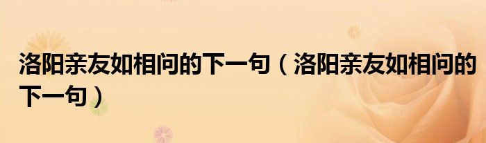 大家好,小育來為大家講解下。洛陽親友如相問的下一句,洛陽親友如相問的下一句很多人還不知道,現(xiàn)在讓我們一起來看看吧!