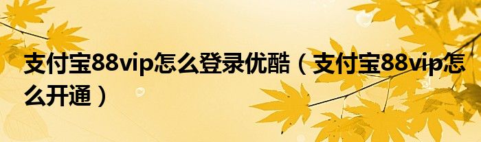 大家好,小育來為大家講解下。支付寶88vip怎么登錄優(yōu)酷,支付寶88vip怎么開通很多人還不知道,現(xiàn)在讓我們一起來看看吧!