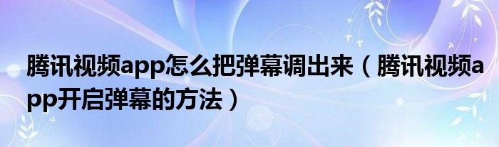 大家好,伊人來為大家解答以上問題。騰訊視頻app怎么把彈幕調(diào)出來,騰訊視頻app開啟彈幕的方法很多人還不知道,現(xiàn)在讓我們一起來看看吧!