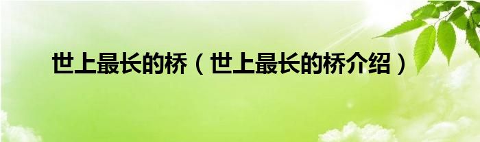 大家好,伊人來為大家解答以上問題。世上最長的橋,世上最長的橋介紹很多人還不知道,現(xiàn)在讓我們一起來看看吧!