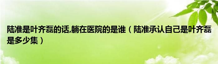 大家好,小育來為大家講解下。陸準(zhǔn)是葉齊磊的話,躺在醫(yī)院的是誰,陸準(zhǔn)承認(rèn)自己是葉齊磊是多少集很多人還不知道,現(xiàn)在讓我們一起來看看吧!