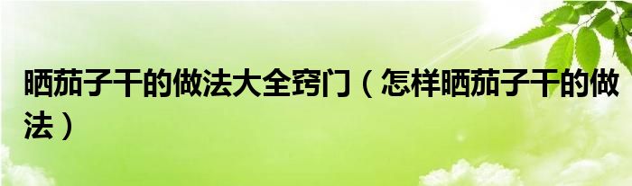 大家好,小育來(lái)為大家講解下。曬茄子干的做法大全竅門,怎樣曬茄子干的做法很多人還不知道,現(xiàn)在讓我們一起來(lái)看看吧!