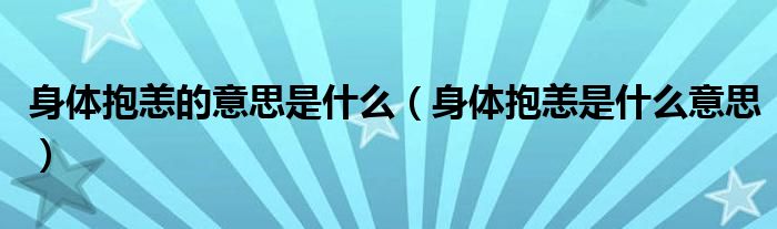大家好,小育來為大家講解下。身體抱恙的意思是什么,身體抱恙是什么意思很多人還不知道,現(xiàn)在讓我們一起來看看吧!
