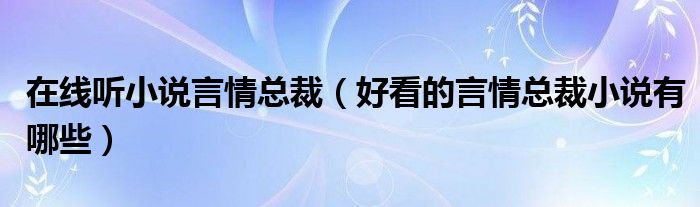 大家好,小育來(lái)為大家講解下。在線聽(tīng)小說(shuō)言情總裁,好看的言情總裁小說(shuō)有哪些很多人還不知道,現(xiàn)在讓我們一起來(lái)看看吧!