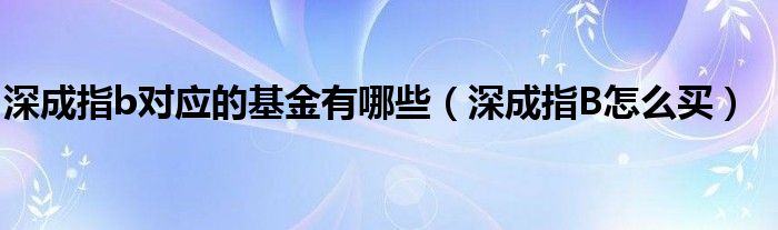 大家好,小育來(lái)為大家講解下。深成指b對(duì)應(yīng)的基金有哪些,深成指B怎么買很多人還不知道,現(xiàn)在讓我們一起來(lái)看看吧!