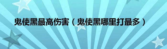 大家好,小育來(lái)為大家講解下。鬼使黑最高傷害,鬼使黑哪里打最多很多人還不知道,現(xiàn)在讓我們一起來(lái)看看吧!