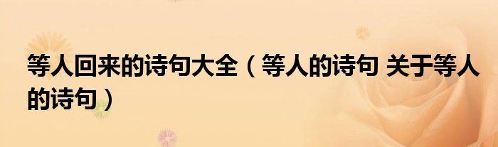 大家好,小育來(lái)為大家講解下。等人回來(lái)的詩(shī)句大全,等人的詩(shī)句 關(guān)于等人的詩(shī)句很多人還不知道,現(xiàn)在讓我們一起來(lái)看看吧!
