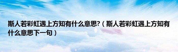 大家好,小育來為大家講解下。斯人若彩虹遇上方知有什么意思?,斯人若彩虹遇上方知有什么意思下一句很多人還不知道,現(xiàn)在讓我們一起來看看吧!