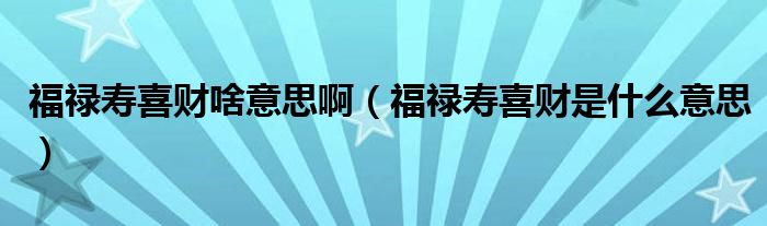 大家好,小育來(lái)為大家講解下。福祿壽喜財(cái)啥意思啊,福祿壽喜財(cái)是什么意思很多人還不知道,現(xiàn)在讓我們一起來(lái)看看吧!