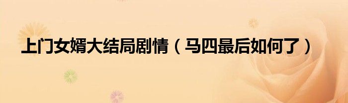 大家好,伊人來為大家解答以上問題。上門女婿大結(jié)局劇情,馬四最后如何了很多人還不知道,現(xiàn)在讓我們一起來看看吧!
