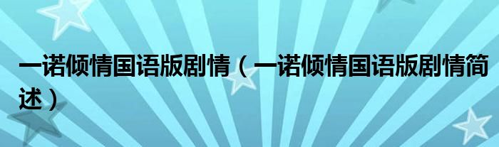 大家好,伊人來為大家解答以上問題。一諾傾情國語版劇情,一諾傾情國語版劇情簡述很多人還不知道,現(xiàn)在讓我們一起來看看吧!