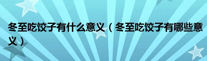 大家好,伊人來(lái)為大家解答以上問(wèn)題。冬至吃餃子有什么意義,冬至吃餃子有哪些意義很多人還不知道,現(xiàn)在讓我們一起來(lái)看看吧!