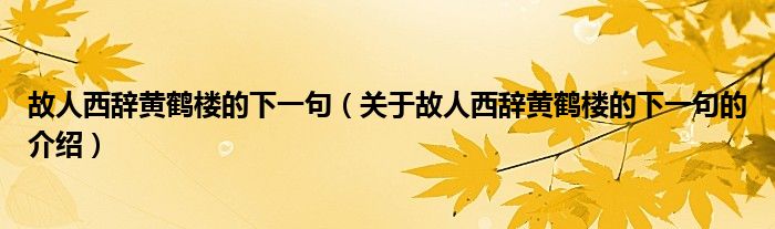 大家好,小新來為大家解答以上的問題。故人西辭黃鶴樓的下一句,關(guān)于故人西辭黃鶴樓的下一句的介紹很多人還不知道,現(xiàn)在讓我們一起來看看吧!