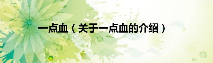 大家好,小新來為大家解答以上的問題。一點血,關(guān)于一點血的介紹很多人還不知道,現(xiàn)在讓我們一起來看看吧!