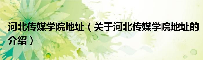 大家好,小新來(lái)為大家解答以上的問(wèn)題。河北傳媒學(xué)院地址,關(guān)于河北傳媒學(xué)院地址的介紹很多人還不知道,現(xiàn)在讓我們一起來(lái)看看吧!