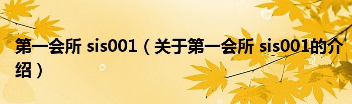大家好,小新來為大家解答以上的問題。第一會所 sis001,關于第一會所 sis001的介紹很多人還不知道,現(xiàn)在讓我們一起來看看吧!