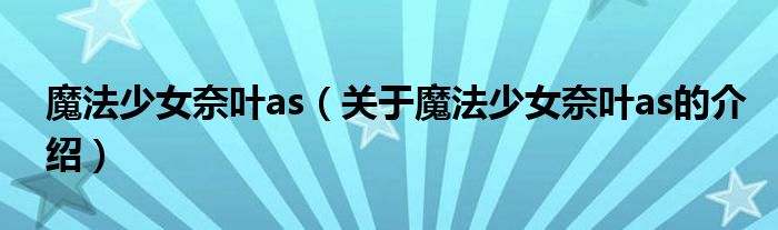 大家好,小新來為大家解答以上的問題。魔法少女奈葉as,關(guān)于魔法少女奈葉as的介紹很多人還不知道,現(xiàn)在讓我們一起來看看吧!