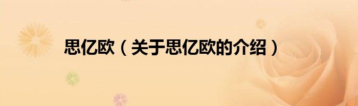 大家好,小新來為大家解答以上的問題。思億歐,關(guān)于思億歐的介紹很多人還不知道,現(xiàn)在讓我們一起來看看吧!