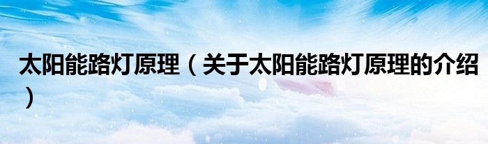 大家好,小新來為大家解答以上的問題。太陽能路燈原理,關于太陽能路燈原理的介紹很多人還不知道,現在讓我們一起來看看吧!