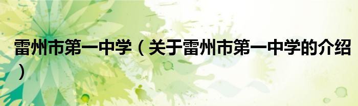 1、雷州市第一中學(xué)始建于1926年,是粵西地區(qū)歷史最悠久的中學(xué)之一,現(xiàn)為雷州市重點(diǎn)中學(xué)。