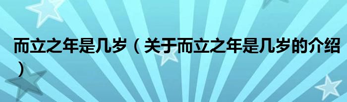 大家好,小新來為大家解答以上的問題。而立之年是幾歲,關(guān)于而立之年是幾歲的介紹很多人還不知道,現(xiàn)在讓我們一起來看看吧!