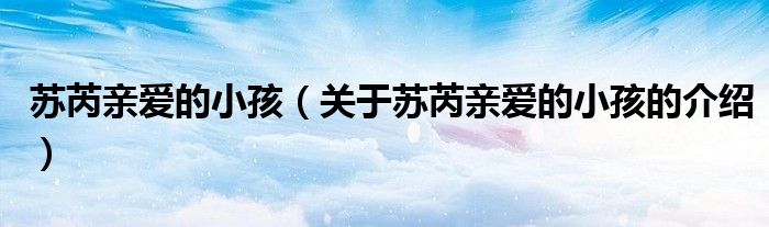 大家好,小新來為大家解答以上的問題。蘇芮親愛的小孩,關(guān)于蘇芮親愛的小孩的介紹很多人還不知道,現(xiàn)在讓我們一起來看看吧!