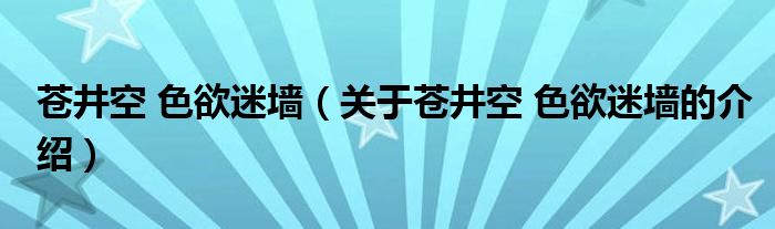 大家好,小新來為大家解答以上的問題。蒼井空 色欲迷墻,關(guān)于蒼井空 色欲迷墻的介紹很多人還不知道,現(xiàn)在讓我們一起來看看吧!