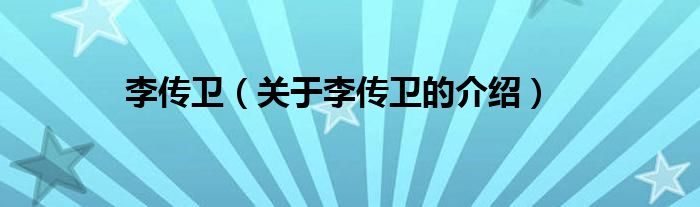 大家好,小新來為大家解答以上的問題。李傳衛(wèi),關(guān)于李傳衛(wèi)的介紹很多人還不知道,現(xiàn)在讓我們一起來看看吧!