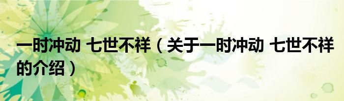 大家好,小新來為大家解答以上的問題。一時沖動 七世不祥,關于一時沖動 七世不祥的介紹很多人還不知道,現(xiàn)在讓我們一起來看看吧!