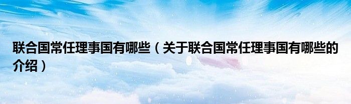 大家好,小新來(lái)為大家解答以上的問(wèn)題。聯(lián)合國(guó)常任理事國(guó)有哪些,關(guān)于聯(lián)合國(guó)常任理事國(guó)有哪些的介紹很多人還不知道,現(xiàn)在讓我們一起來(lái)看看吧!