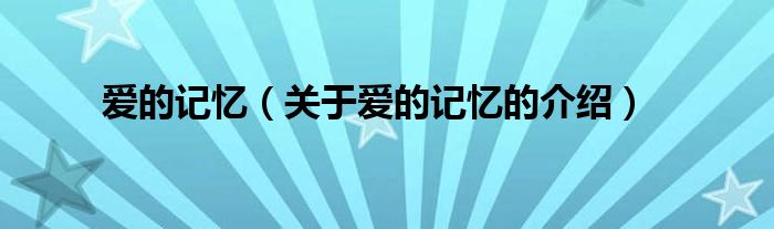 大家好,小新來為大家解答以上的問題。愛的記憶,關(guān)于愛的記憶的介紹很多人還不知道,現(xiàn)在讓我們一起來看看吧!