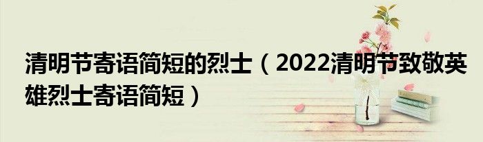 大家好,伊人來為大家解答以上問題。清明節(jié)寄語簡短的烈士,2022清明節(jié)致敬英雄烈士寄語簡短很多人還不知道,現(xiàn)在讓我們一起來看看吧!