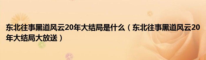 大家好,伊人來為大家解答以上問題。東北往事黑道風(fēng)云20年大結(jié)局是什么,東北往事黑道風(fēng)云20年大結(jié)局大放送很多人還不知道,現(xiàn)在讓我們一起來看看吧!