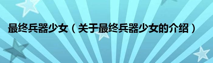 大家好,小新來為大家解答以上的問題。最終兵器少女,關于最終兵器少女的介紹很多人還不知道,現(xiàn)在讓我們一起來看看吧!