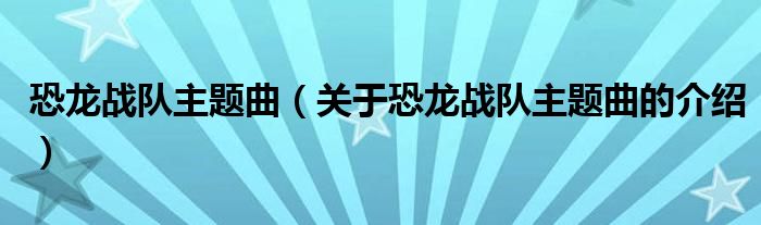 大家好,小新來為大家解答以上的問題??铸垜?zhàn)隊(duì)主題曲,關(guān)于恐龍戰(zhàn)隊(duì)主題曲的介紹很多人還不知道,現(xiàn)在讓我們一起來看看吧!