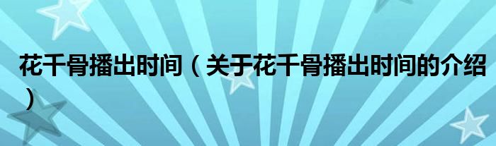大家好,小新來為大家解答以上的問題?;ㄇЧ遣コ鰰r(shí)間,關(guān)于花千骨播出時(shí)間的介紹很多人還不知道,現(xiàn)在讓我們一起來看看吧!