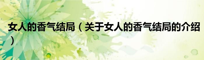 大家好,小新來為大家解答以上的問題。女人的香氣結(jié)局,關(guān)于女人的香氣結(jié)局的介紹很多人還不知道,現(xiàn)在讓我們一起來看看吧!