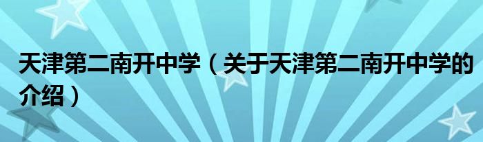 大家好,小新來為大家解答以上的問題。天津第二南開中學,關于天津第二南開中學的介紹很多人還不知道,現(xiàn)在讓我們一起來看看吧!