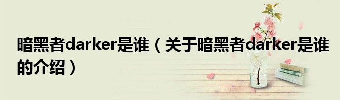 大家好,小新來(lái)為大家解答以上的問(wèn)題。暗黑者darker是誰(shuí),關(guān)于暗黑者darker是誰(shuí)的介紹很多人還不知道,現(xiàn)在讓我們一起來(lái)看看吧!